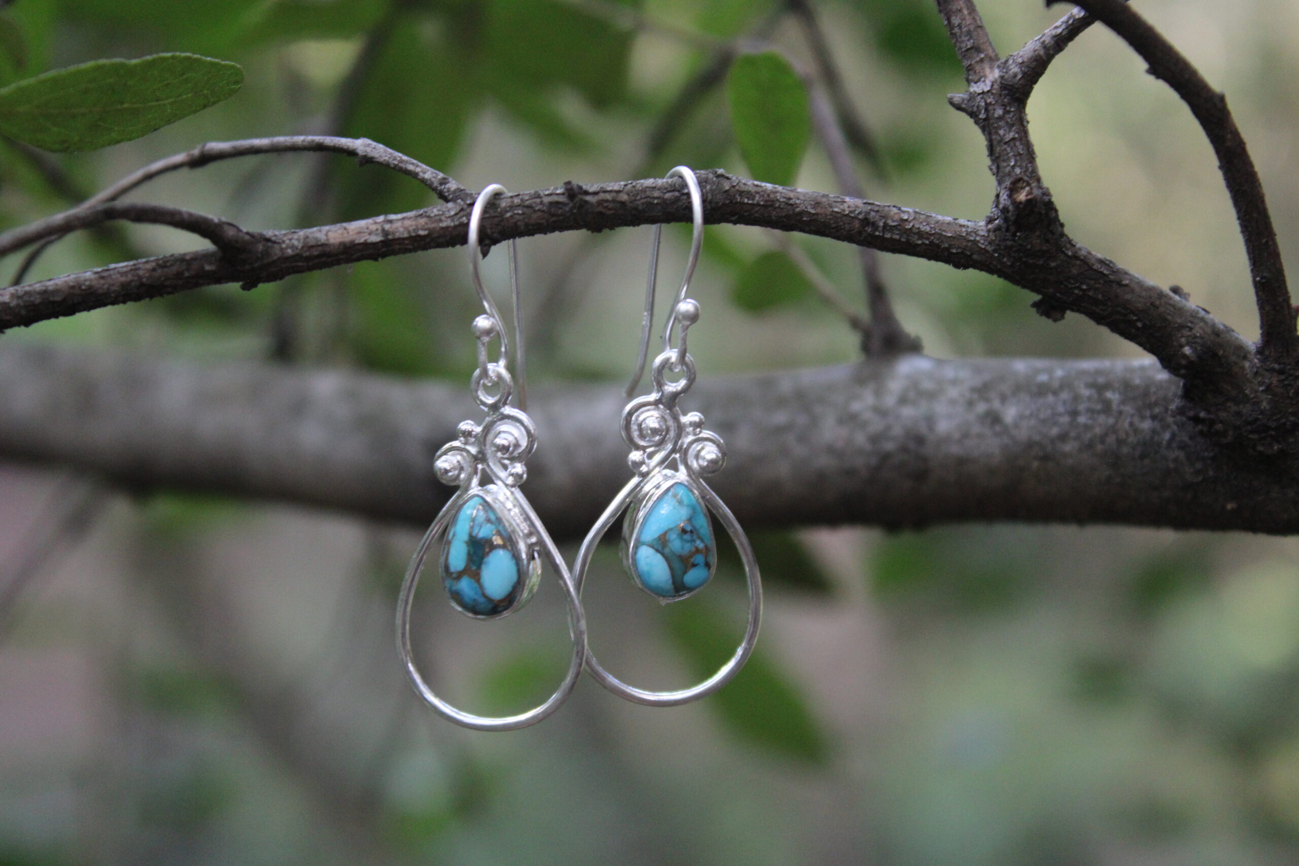 Mohave Turquoise Designer Teardrop Drop Earrings