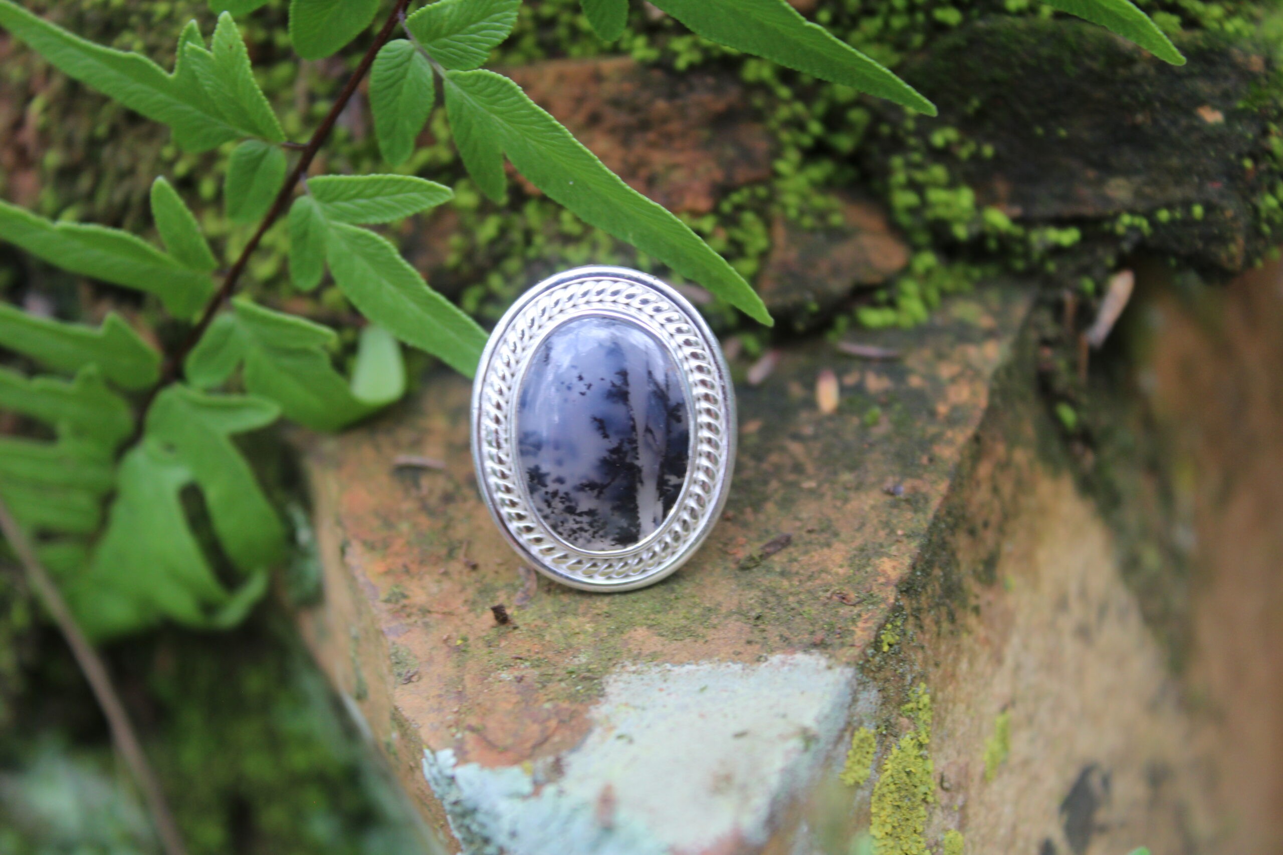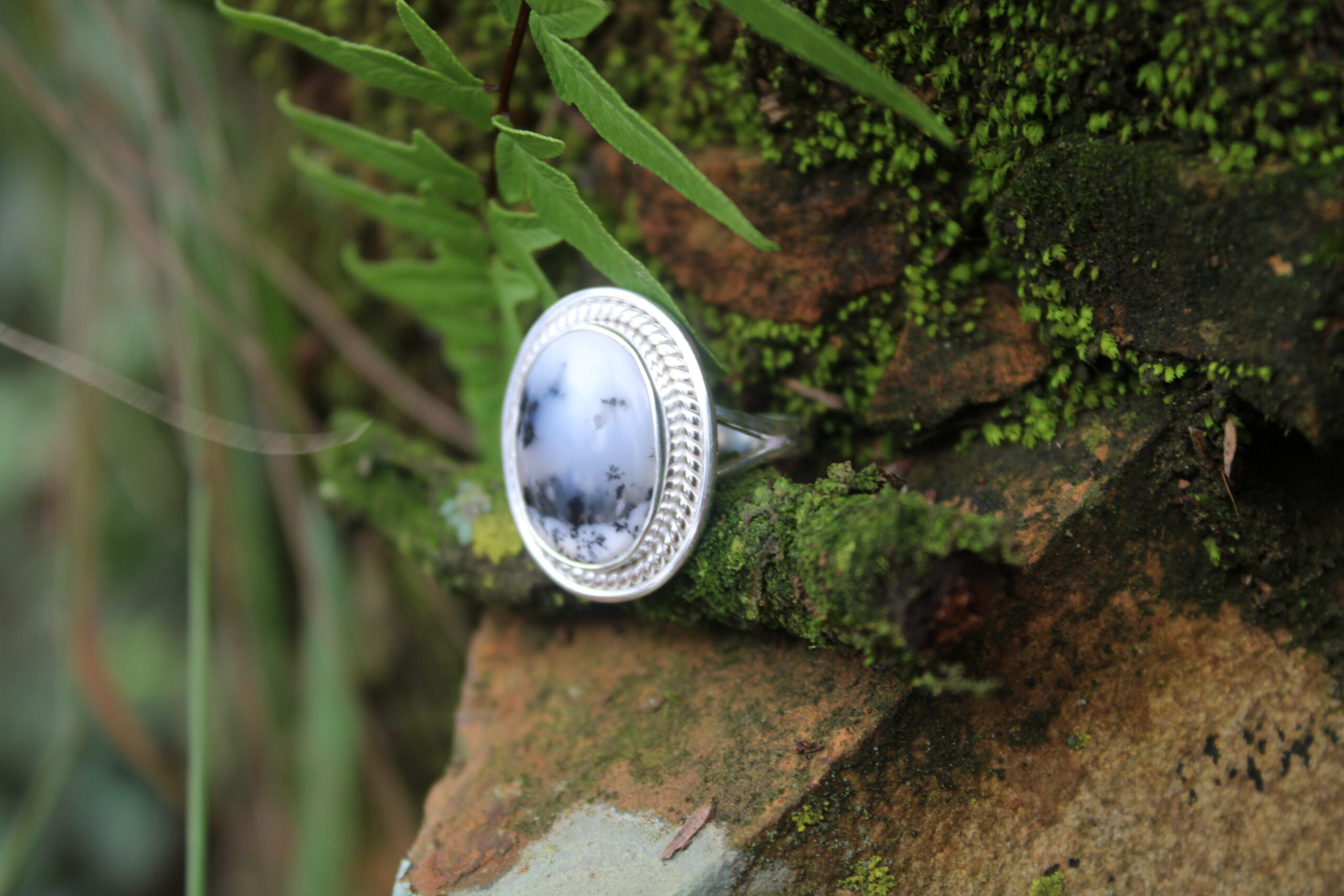 Oval Dendrite Agate Designer Ring