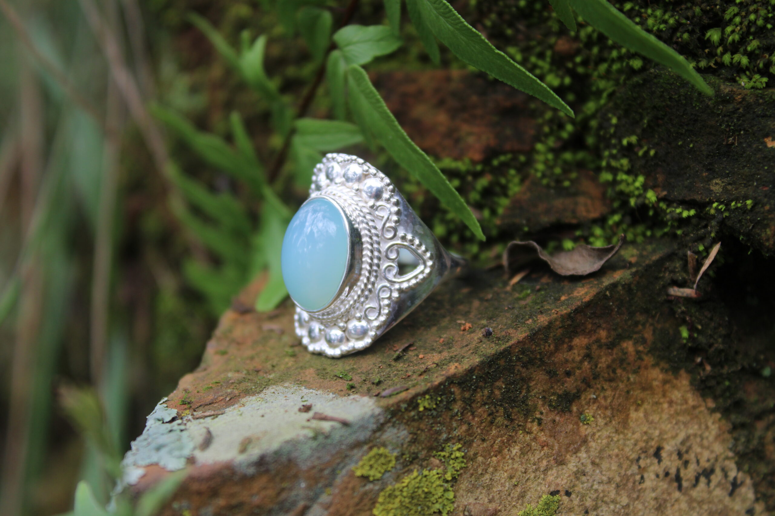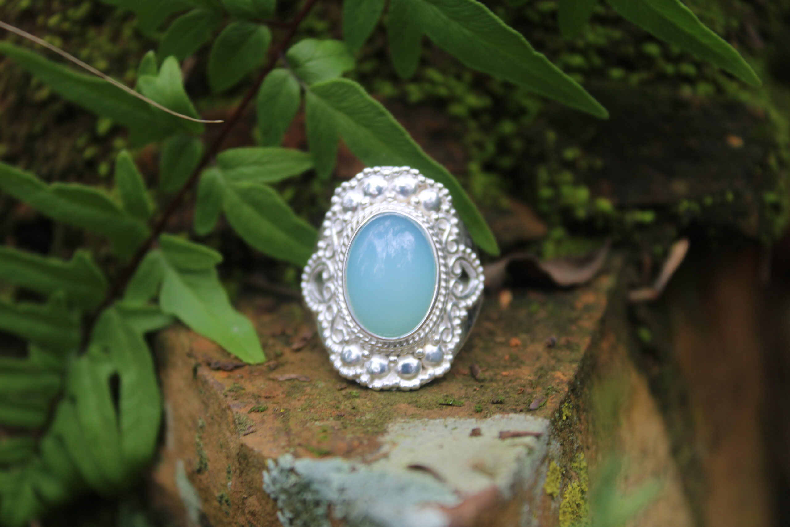 Vintage Filigree Aqua Chalcedony Designer Ring